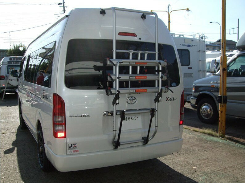 ■商品番号OSE-TL-002-M■商品概要【取付難易度】3【重量】約10Kg【素材/材質】アルミ、スチール、強化ゴム【最大積載量】30Kg車種:200系ハイエースミドルルーフ■適合車種▼その他200系ハイエースなど ■詳細説明「もっと」に応える3台積みタイプ自転車3台積みが可能な、Travel life サイクルキャリアの最大積載タイプです。